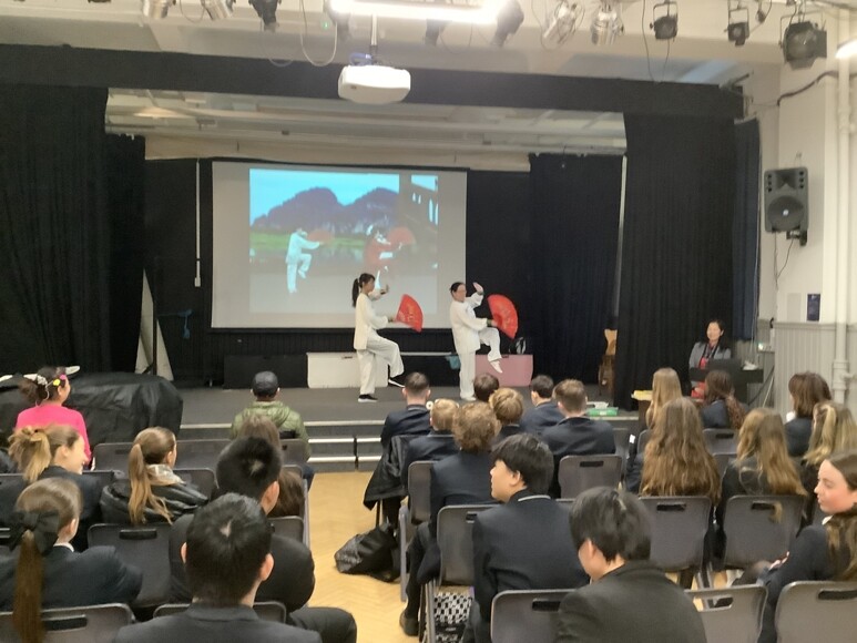 Our school MFL department invited Bournemouth and Poole Chinese Angel Arts Association to perform the traditional Chinese Happy Song and Dance, the Taiji Fan show and a sign language song called A Thankful Heart. Some pupils such as Helen, Joshua, Kunmi, Oscar Li and Zoe sang the Chinese song, Jasmine Flower.